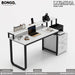 White study table with black legs on a white background, featuring Bongo Furniture branding.